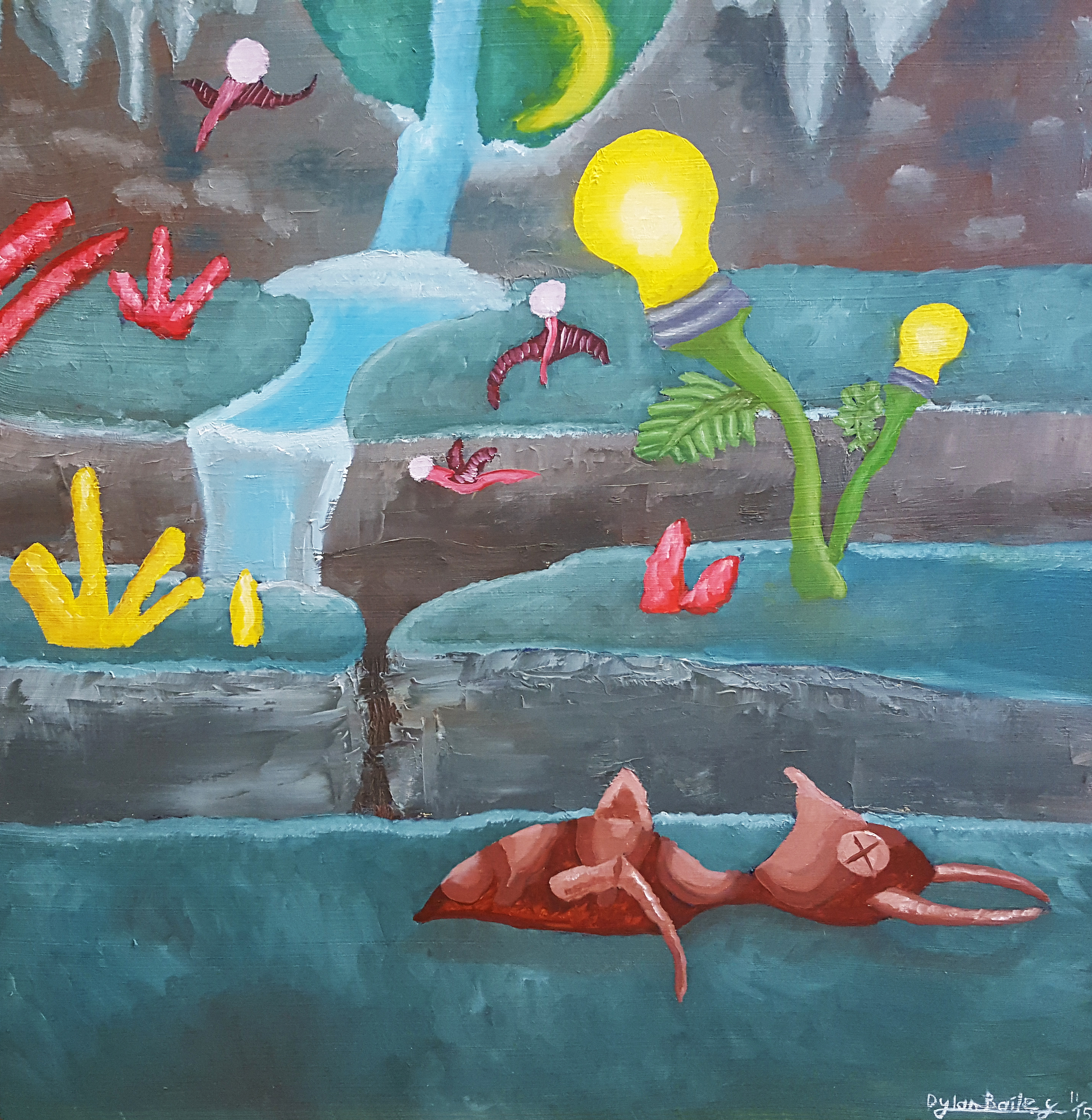 One of the biggest artworks I have ever created. I wanted to evoke the 4 colours of the medicine wheel of indigenous culture, and the elements. I also branched out, testing new techniques that I haven’t done before in acrylic. This artwork took me months to create, off and on working on it for 6 months.